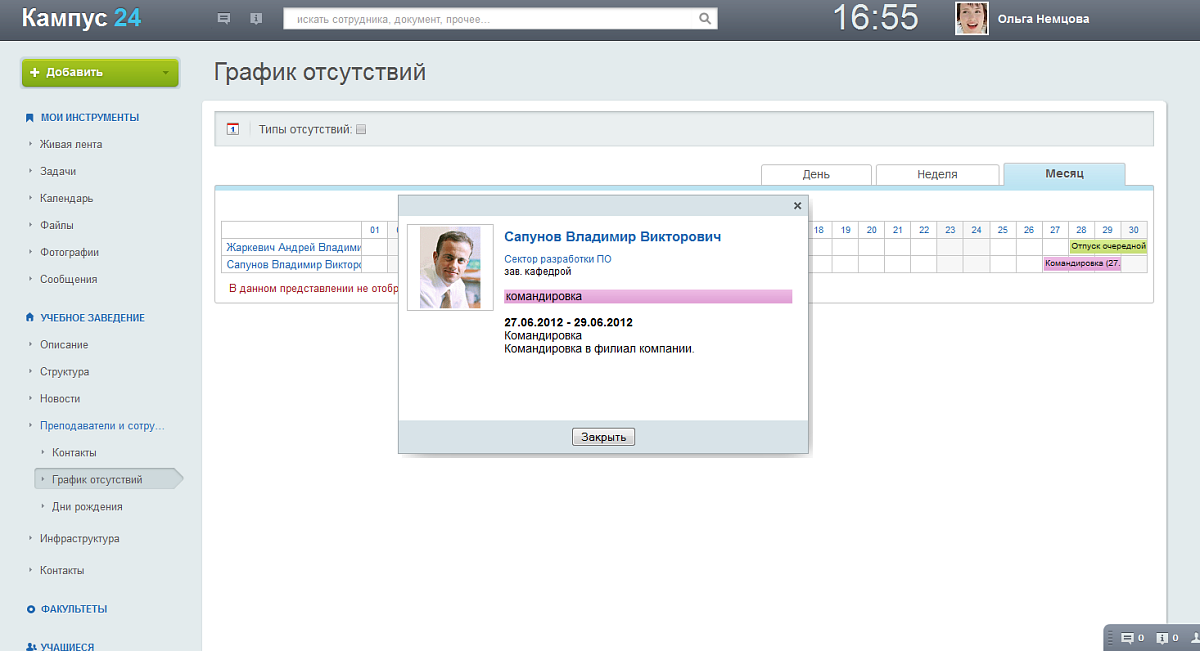 1. Корпоративный портал для сотрудников учебного заведения (интранет-зона)